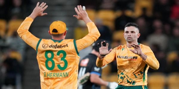 ওয়েলিংটন, ২২ মার্চ (হি.স.): রবিবার নিউ জিল্যান্ডের বিপক্ষে চতুর্থ টি-টোয়েন্টিতে দক্ষিণ আফ্রিকার স্পিনারদের নির্ণায়ক ভূমিকার সুবাদে দলটি ১৯ রানে জয়লাভ করে পাঁচ ম্যাচের সিরিজ ২-২ সমতায় ফেরার। ওয়েলিংটনে প্রোটিয়ারা ৫ উইকেটে ১৬৪ রান করলে নিউ জিল