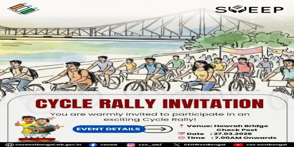 কলকাতা, ২৬ মার্চ (হি.স.) : আসন্ন বিধানসভা নির্বাচনে সাধারণ ভোটারদের মধ্যে সচেতনতা বাড়াতে অভিনব প্রচার কর্মসূচি গ্রহণ করল নির্বাচন কমিশন। শুক্রবার কলকাতা ও হাওড়া—উভয় জেলাতেই ট্রাম এবং সাইকেলের মাধ্যমে এই সচেতনতা অভিযান চালানো হবে। মুখ্য নির্বাচন আধ