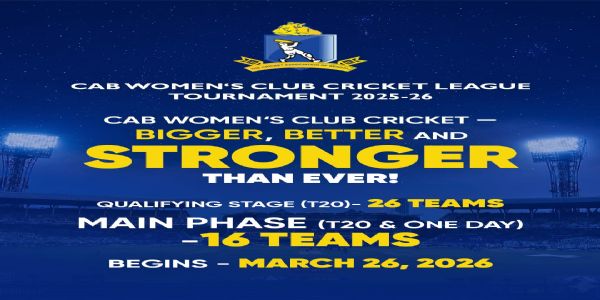 কলকাতা, ২৬ মার্চ (হি.স.) : প্রথম দুই সংস্করণের সাফল্যের পর বহু প্রতীক্ষিত সিএবি মহিলা ক্লাব ক্রিকেট টুর্নামেন্ট ২০২৫-২৬ - এর তৃতীয় সংস্করণের সূচনা হল বৃহস্পতিবার। শহরের দুটি মাঠে চারটি উত্তেজনাপূর্ণ ম্যাচের মধ্য দিয়ে শুরু হয় এবারের আসর।উল্লেখ্য
